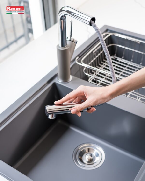 Chậu rửa bát Granite Sink Phoenix Smart 860 – Grey nằm trong bộ sưu tập chậu vòi đá cao cấp của Konox – Kiệt tác Ý trong lòng bếp Việt
