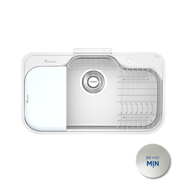 Tích hợp phụ kiện thông minh: Thớt nhựa, rổ phụ, giá úp bát, siphon.